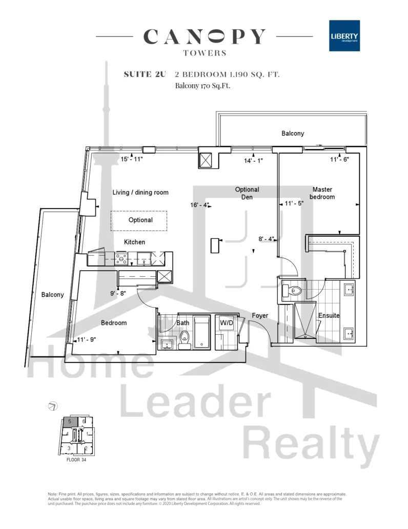 Suite 2U 2 Bed , 2 Bath 1190 SQFT South West