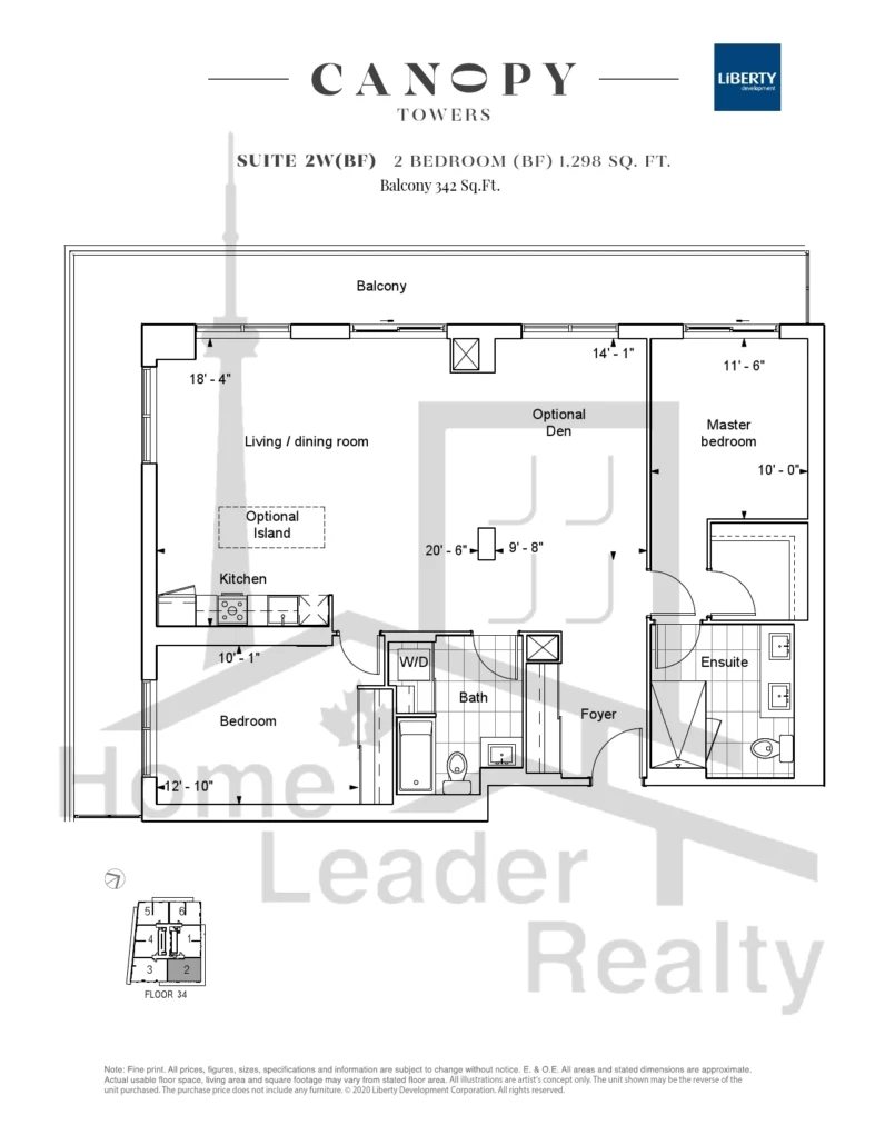 Suite 2V 2 Bed , 2 Bath 1198 SQFT North West