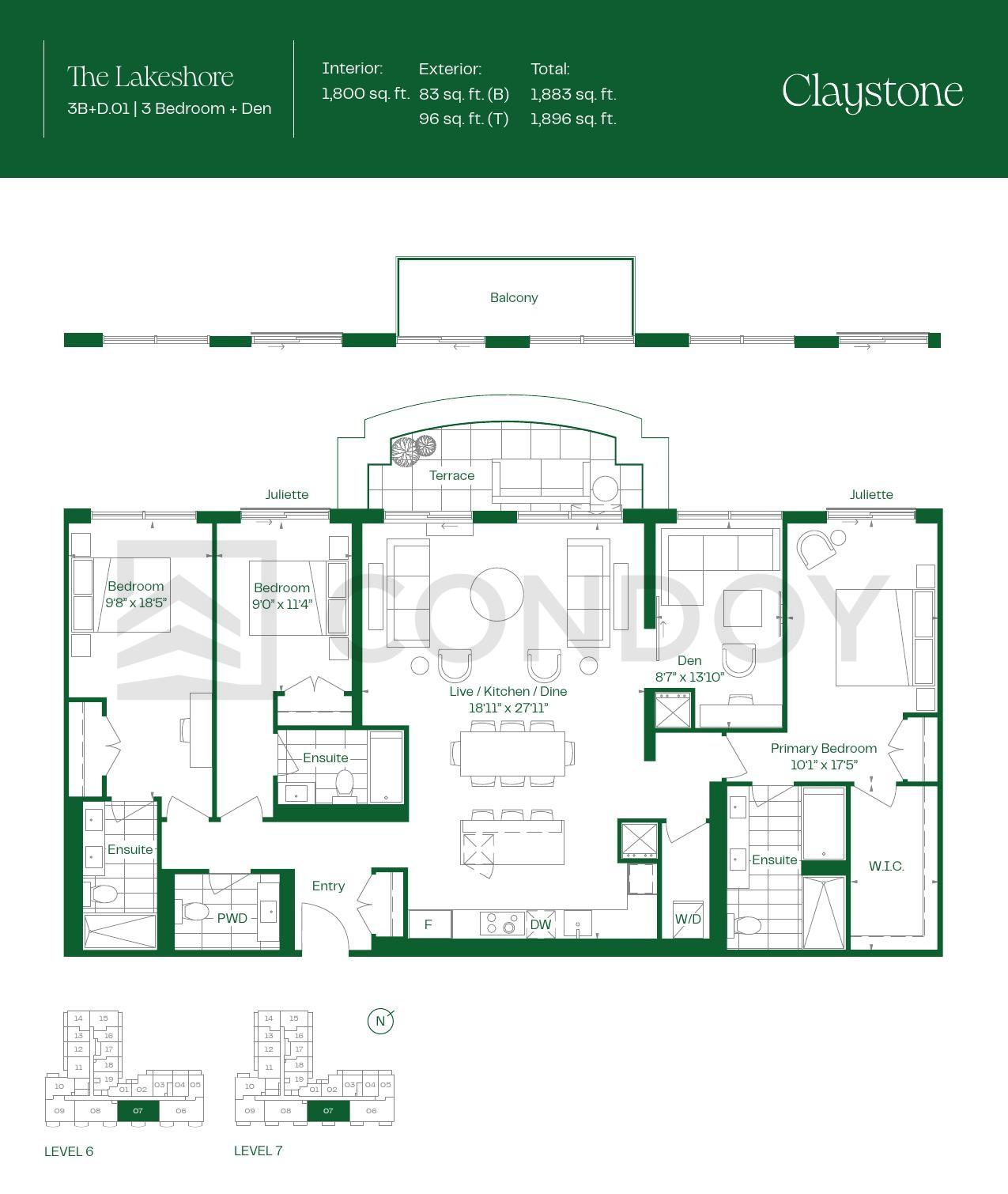 Claystone Condos | Penthouse The Lakeshore 3 beds & 4 baths