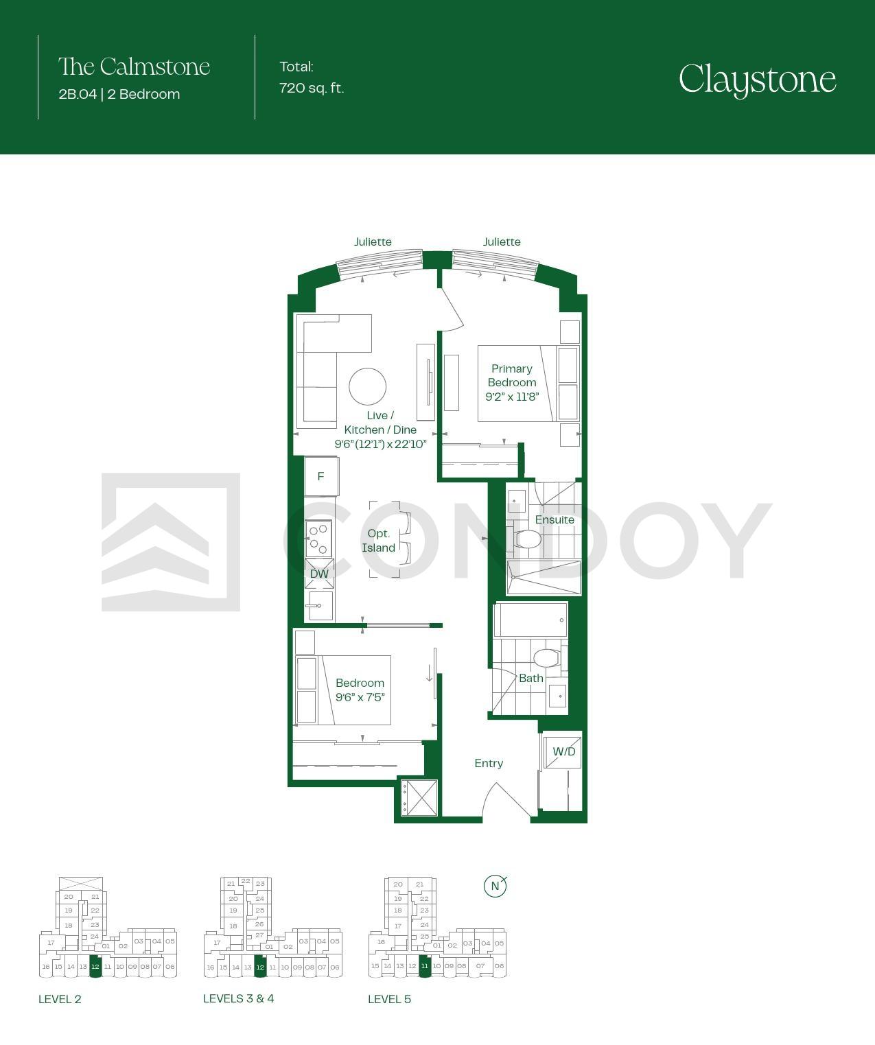The Calmstone 2 Bed , 2 Bath 720 SQFT South
