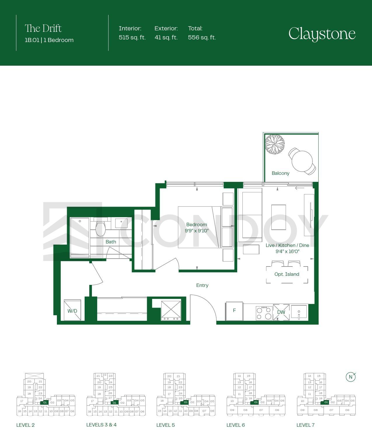 The Drift 1 Bed , 1 Bath 515 SQFT North