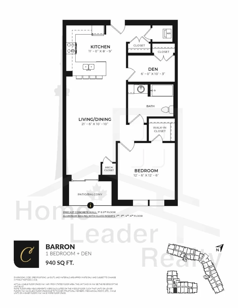Barron-311 2.5 Bed , 2 Bath 940 SQFT south east
