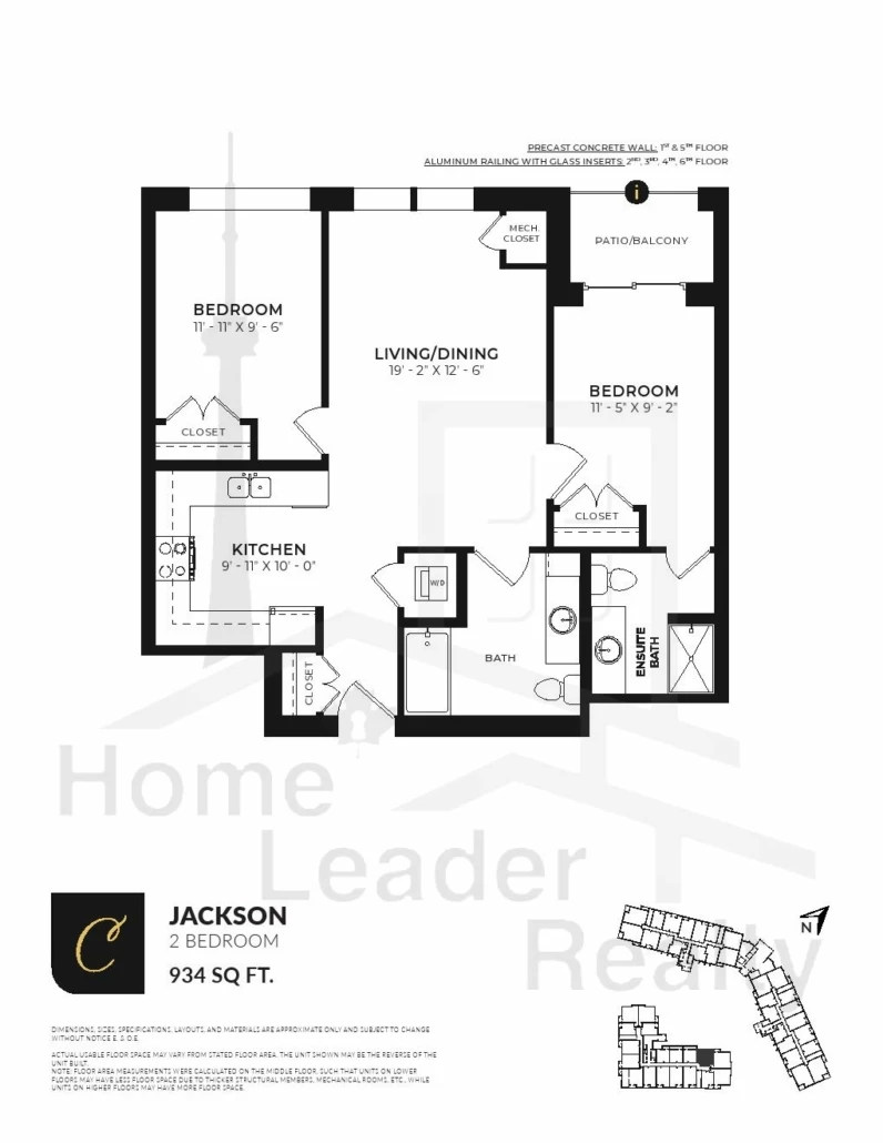 Jackson-104 2 Bed , 2 Bath 934 SQFT north west