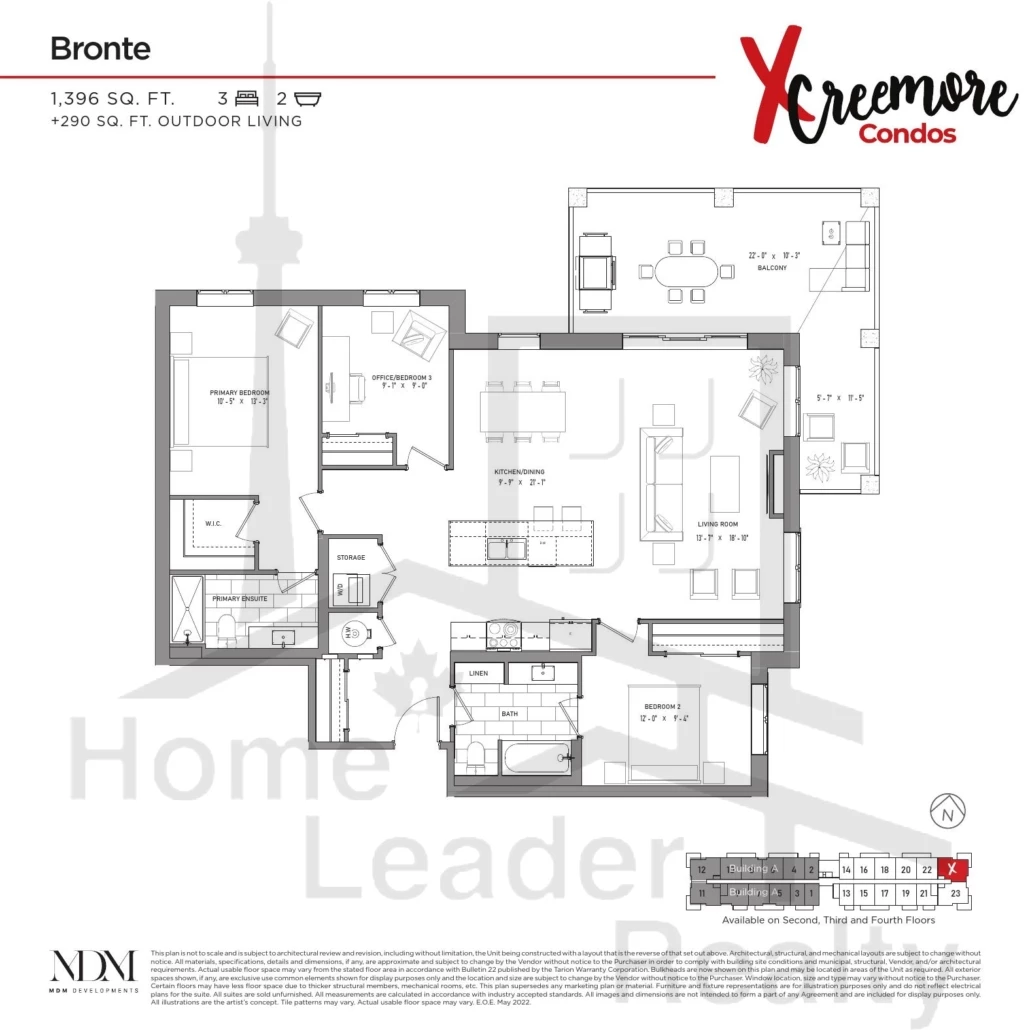 Suite 224 Bronte 3 Bed , 2 Bath 1396 SQFT North East