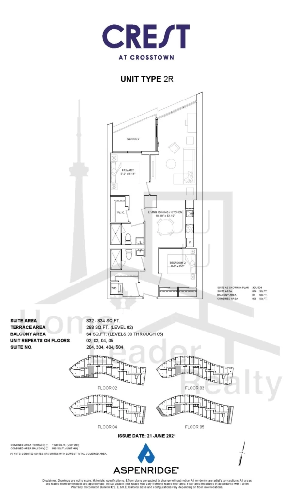304 (2R) 2 Bed , 2 Bath 834 SQFT South