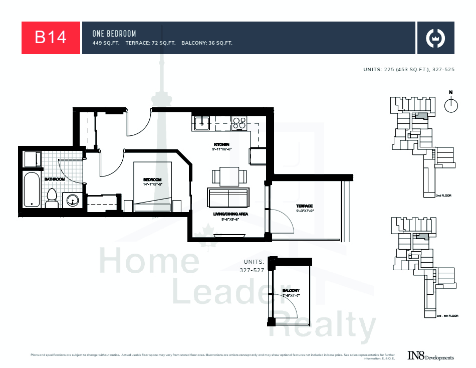 Unit Type B9 1 Bed , 1 Bath 509 SQFT North
