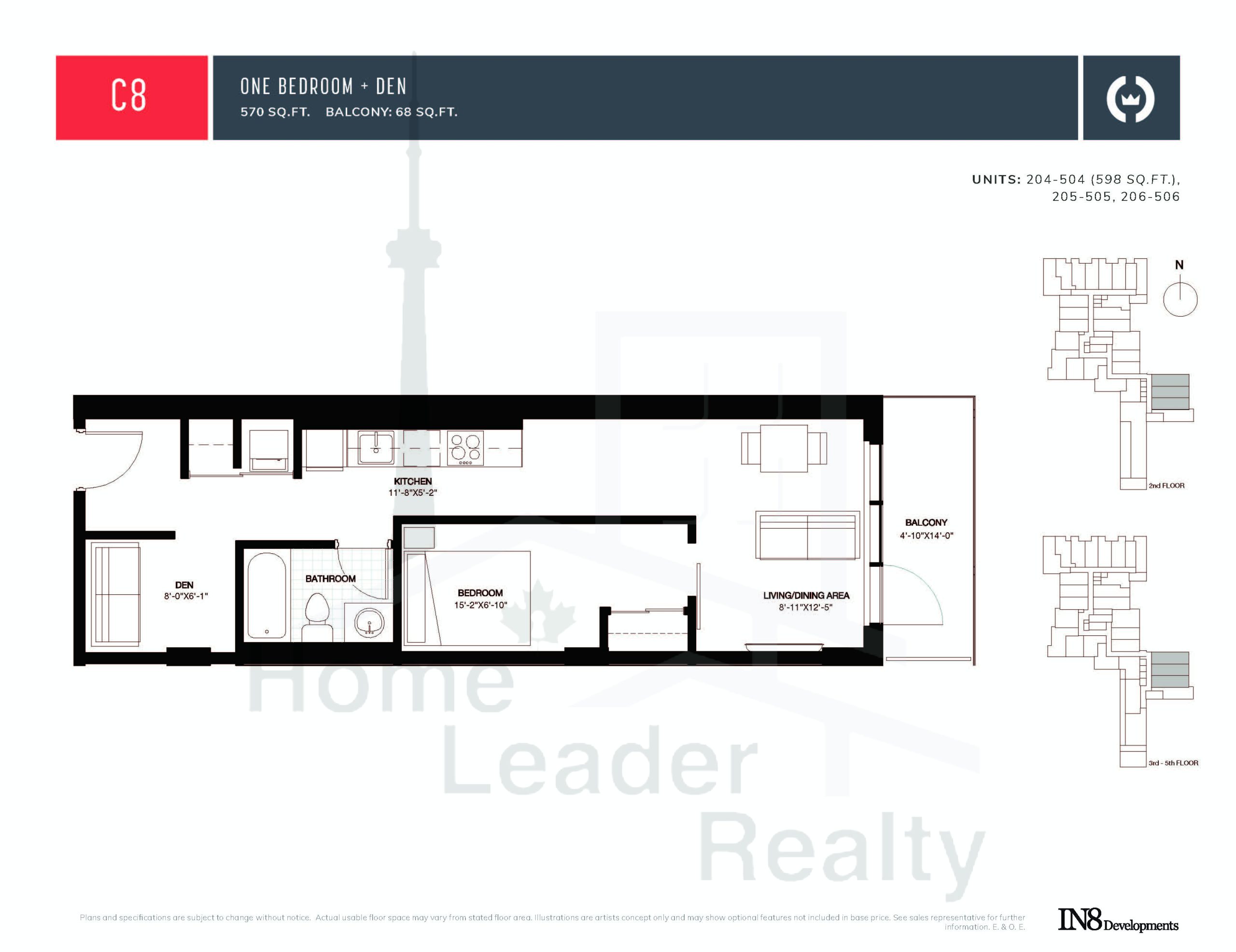 C1 1.5 Bed , 1 Bath 567 SQFT North