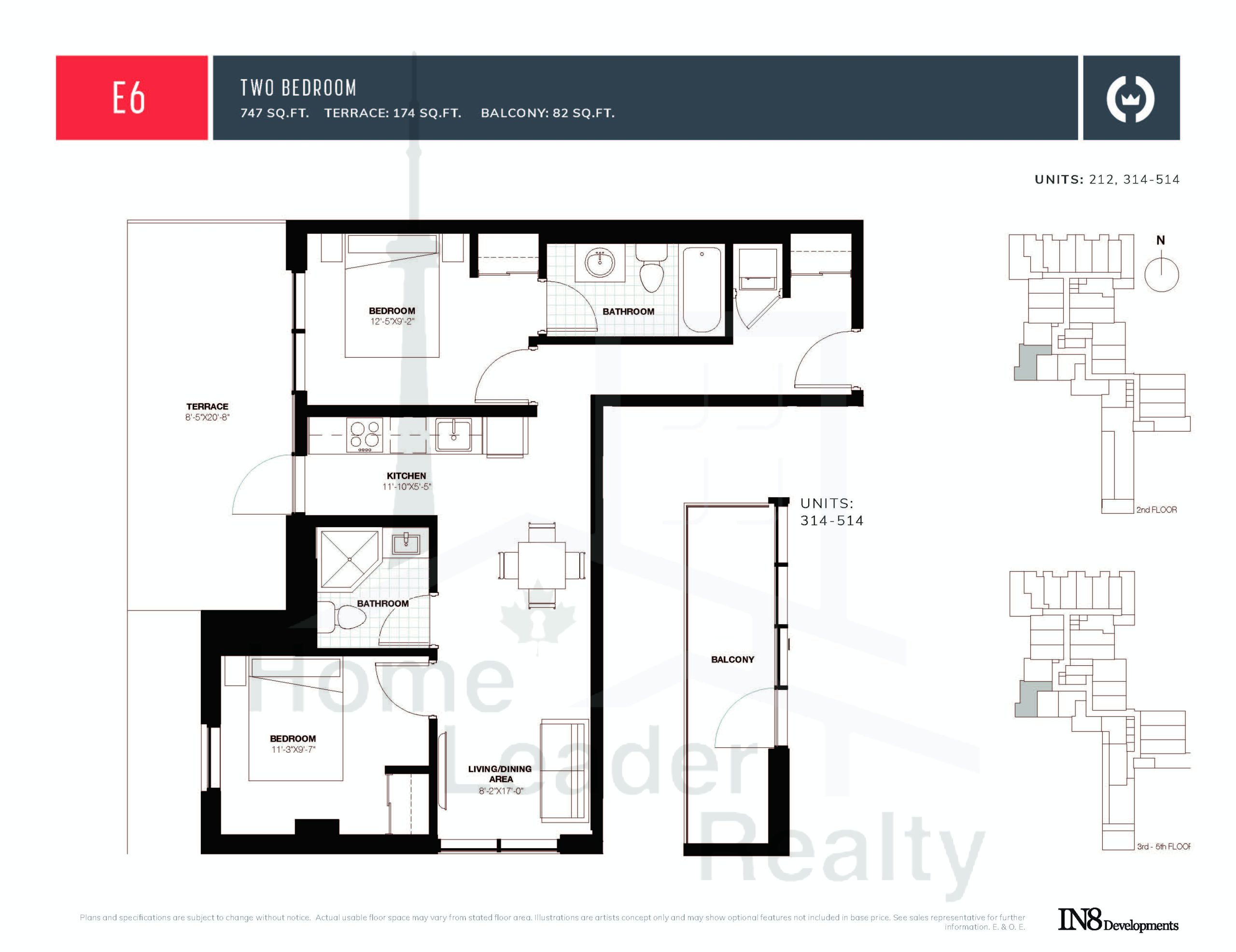 Unit Type E6 2 Bed , 2 Bath 747 SQFT South West