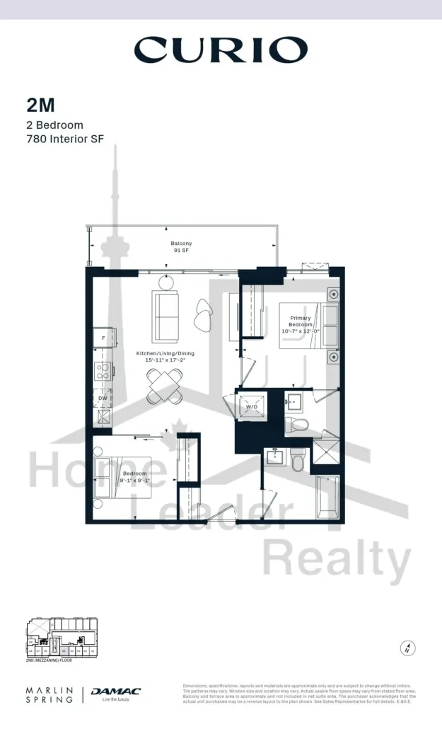 2Z 2 Bed , 2 Bath 732 SQFT North East