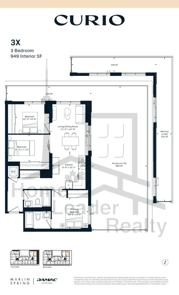 3J 3.5 Bed , 2 Bath 974 SQFT north west