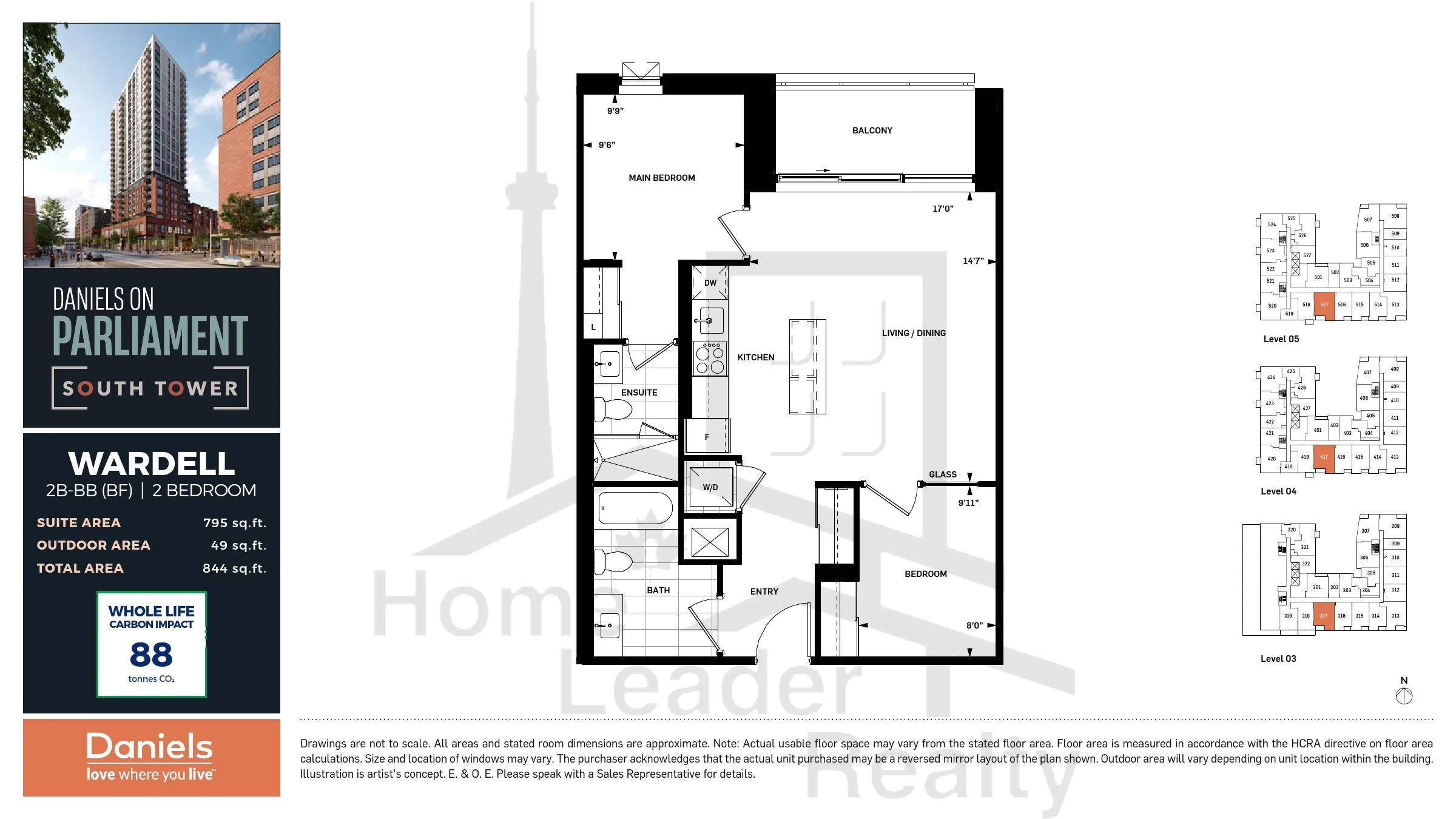 CARLAW 2 Bed , 2 Bath 839 SQFT South East
