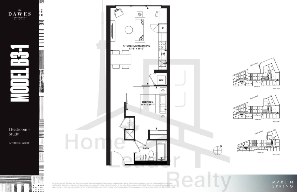 B3-1 1.5 Bed , 1 Bath 573 SQFT West