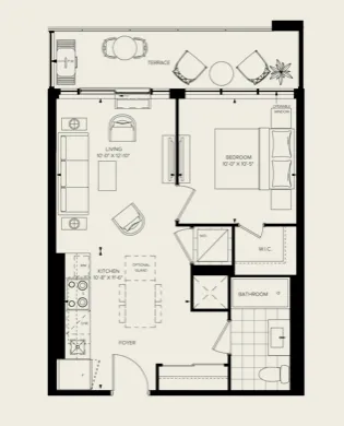 SUITE 826 1 Bed , 1 Bath 541 SQFT West