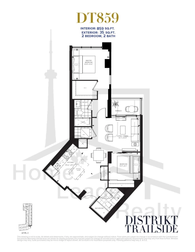 Suite PH 09 DT793 | 2 Bed , 2 Bath | 793 SQFT | East |