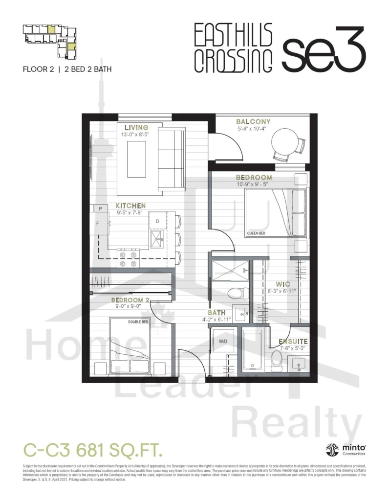 545 2B 2 Bed , 2 Bath 892 SQFT