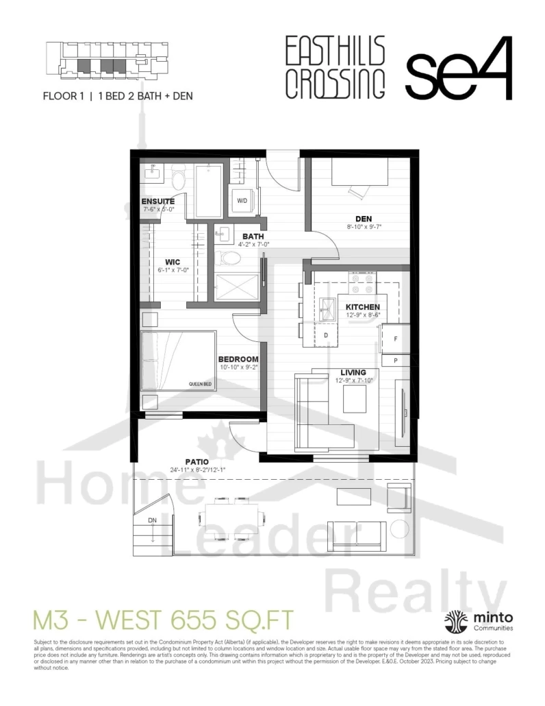 694 1B+D 1.5 Bed , 2 Bath 655 SQFT