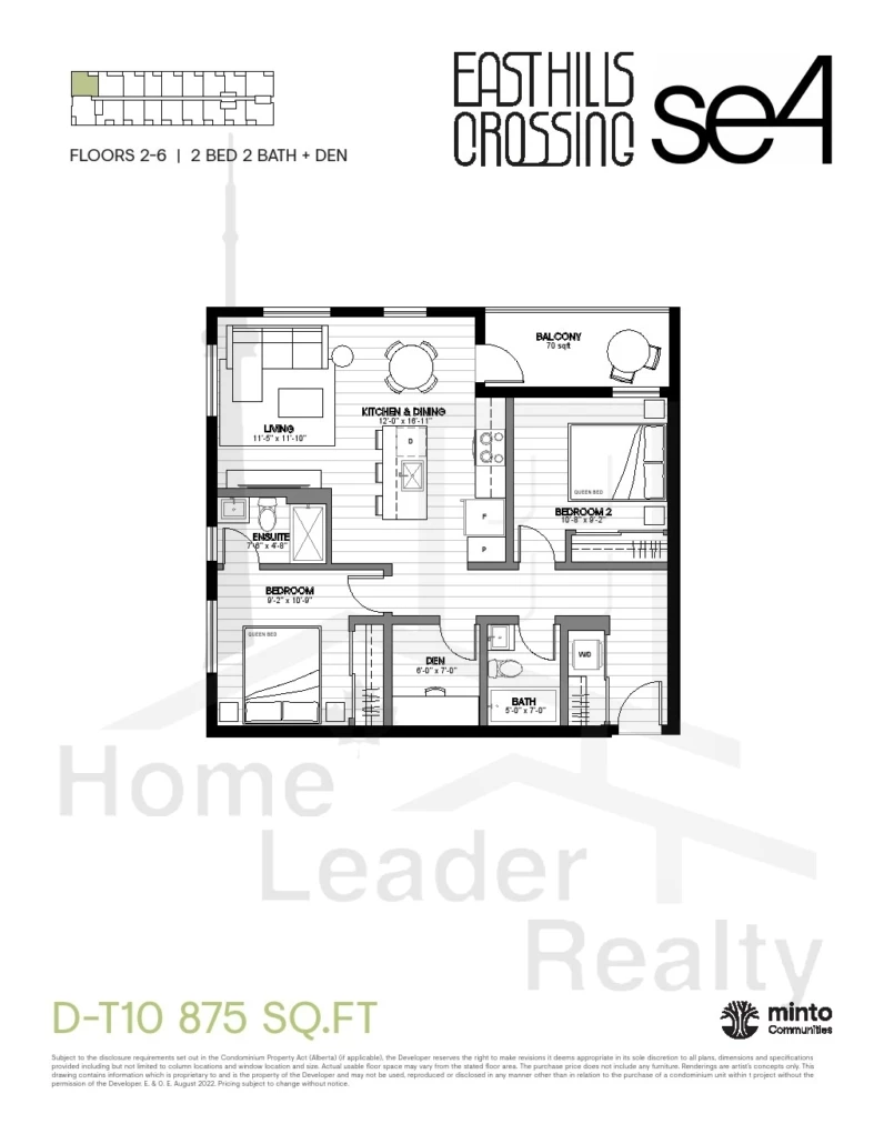 798 2B+D 2.5 Bed , 2 Bath 896 SQFT