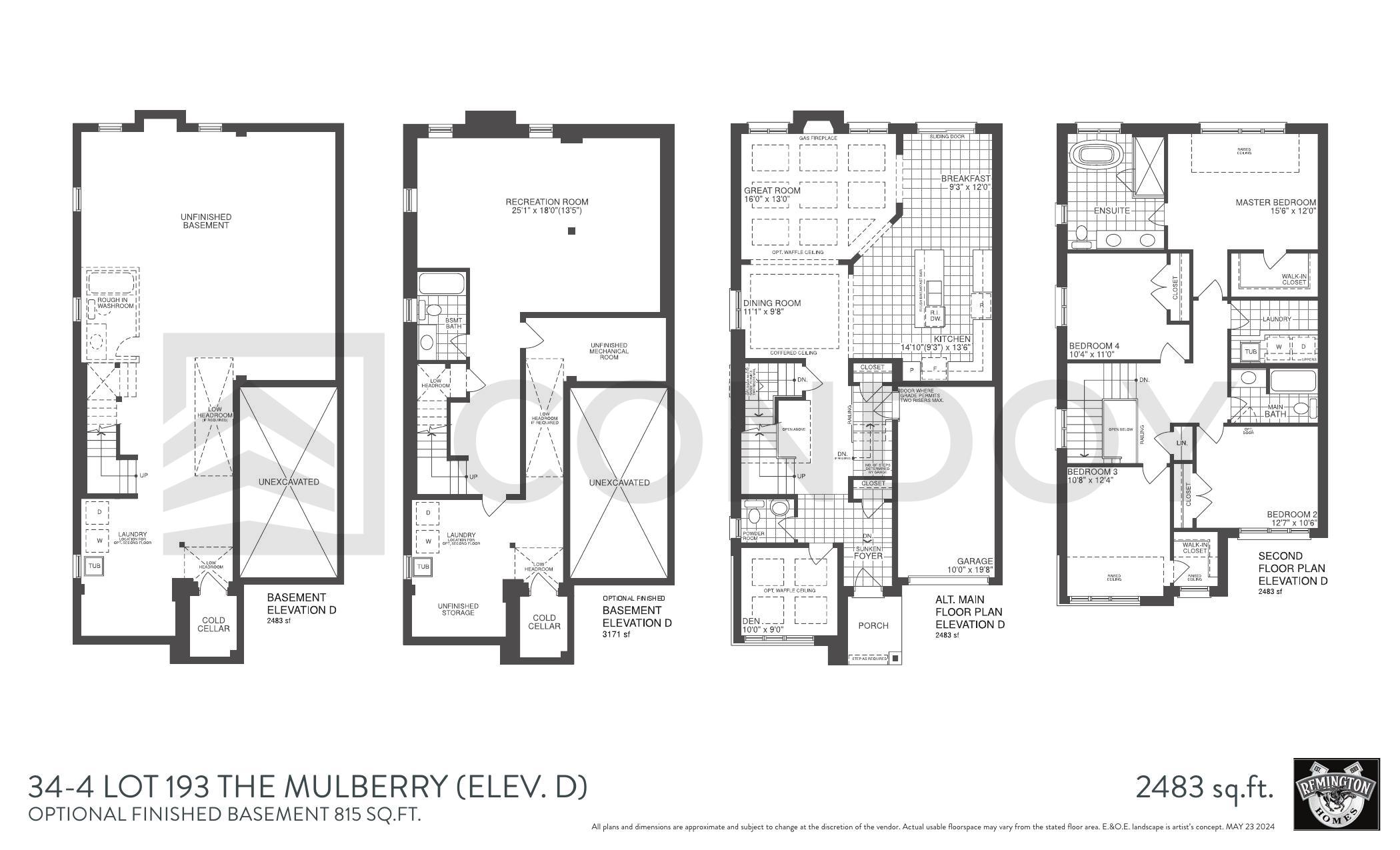 Price Includes Side Door – Blk 193, 198, 200 WOD $25,000 Upgrades: Optional Finished Basement $100,000