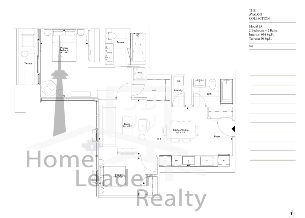 The Avalon 1 2 Bed , 2 Bath 934 SQFT