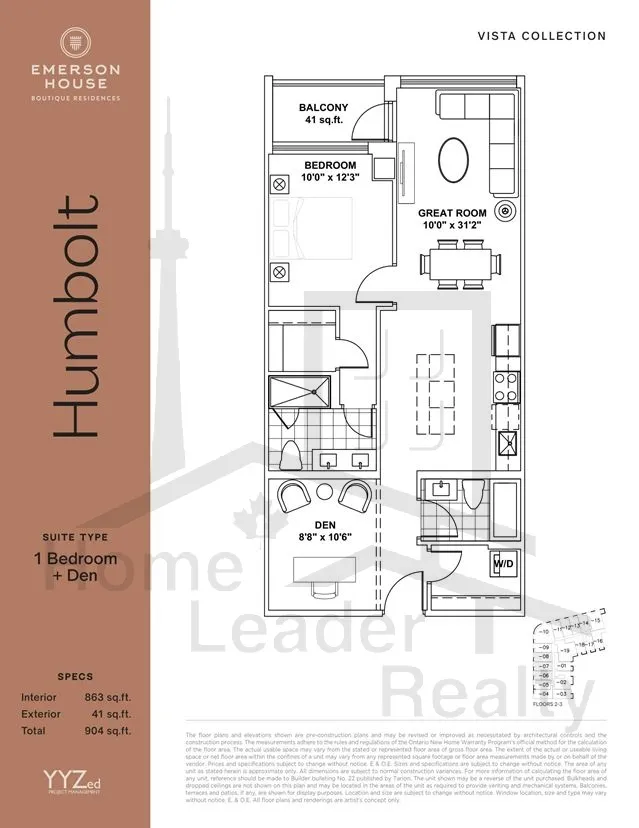 Humbolt | 1.5 Bed , 2 Bath | 863 SQFT | West |
