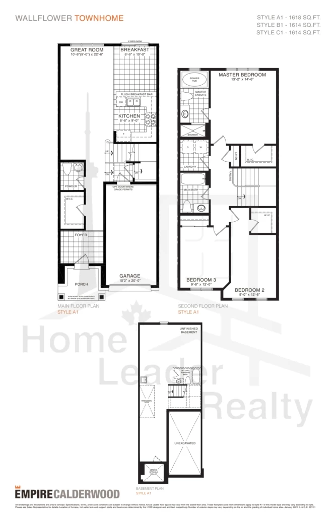 Wallflower End B1 3 Bed , 2.5 Bath 1614 SQFT