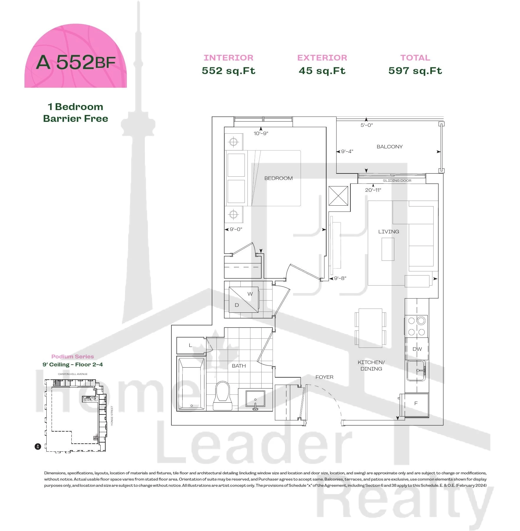 A552/BF 1 Bed , 1 Bath 552 SQFT North