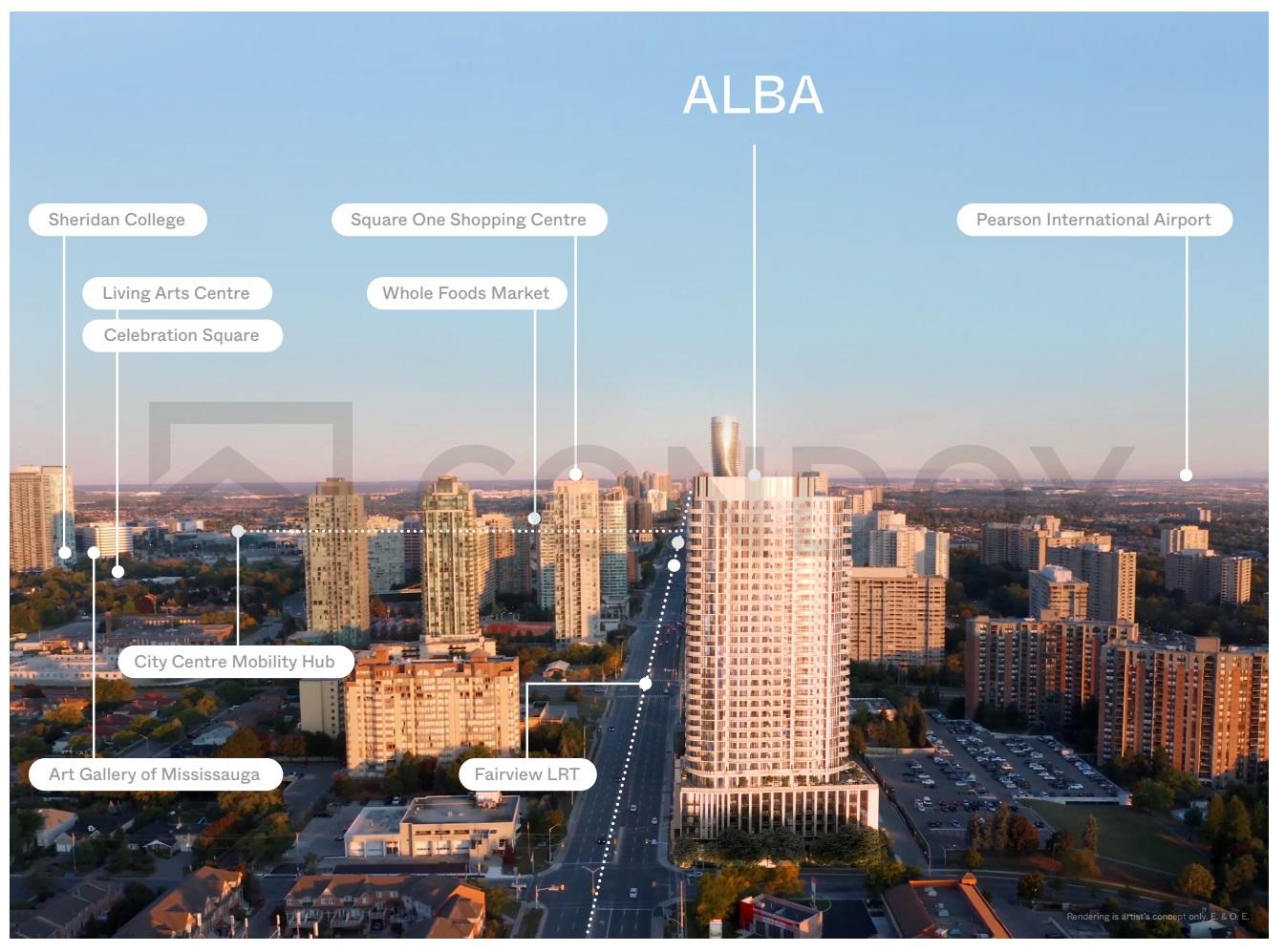 Situated at Fairview Road East, Alba Condos is perfectly positioned in the vibrant Mississauga Valley neighborhood. Residents are located just minutes from the bustling Square One Shopping Centre and the Cooksville GO Station, ensuring world-class shopping, dining, and transit are always within reach. With the upcoming Hurontario LRT just steps away, this location offers unparalleled connectivity to the rest of the GTA, making it a premier choice for professionals and investors alike.