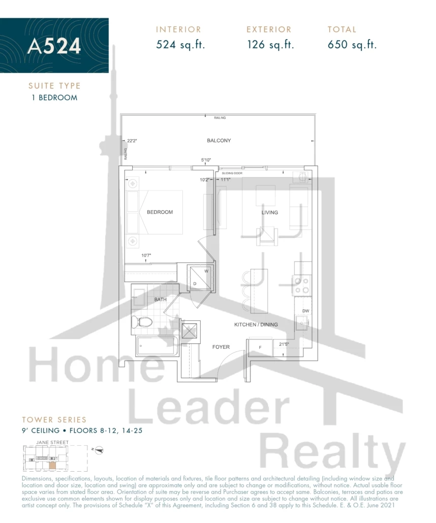 A524 1 Bed , 1 Bath 524 SQFT West