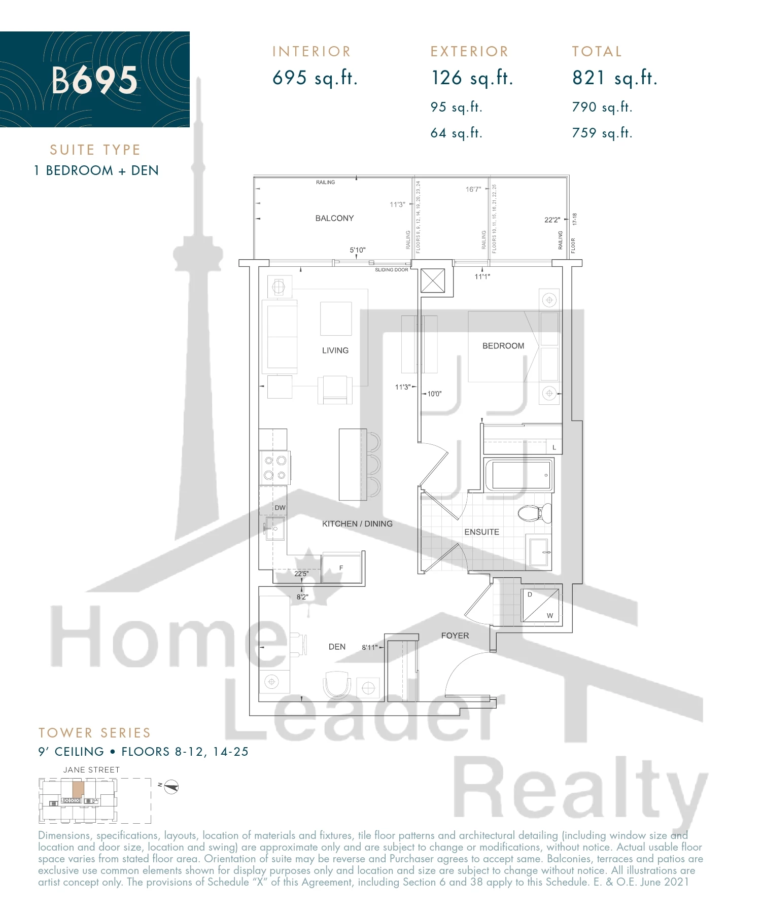 B695 1.5 Bed , 1 Bath 695 SQFT East