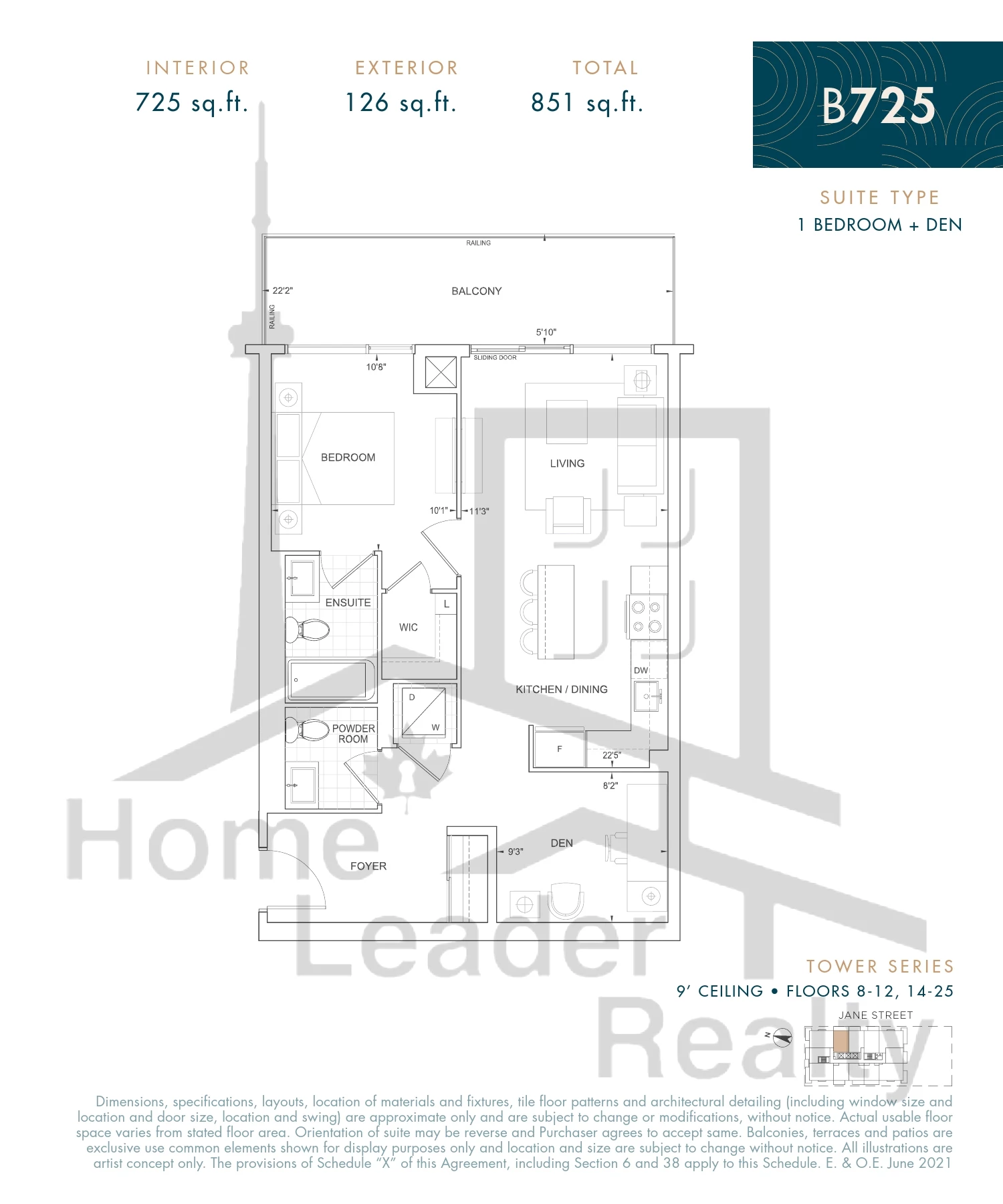 B725 1.5 Bed , 2 Bath 725 SQFT East
