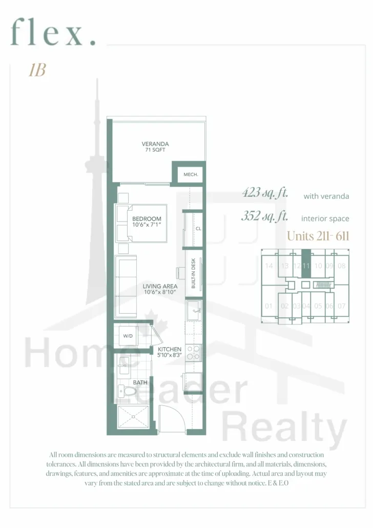 1E+D 1.5 Bed , 1 Bath 771 SQFT south