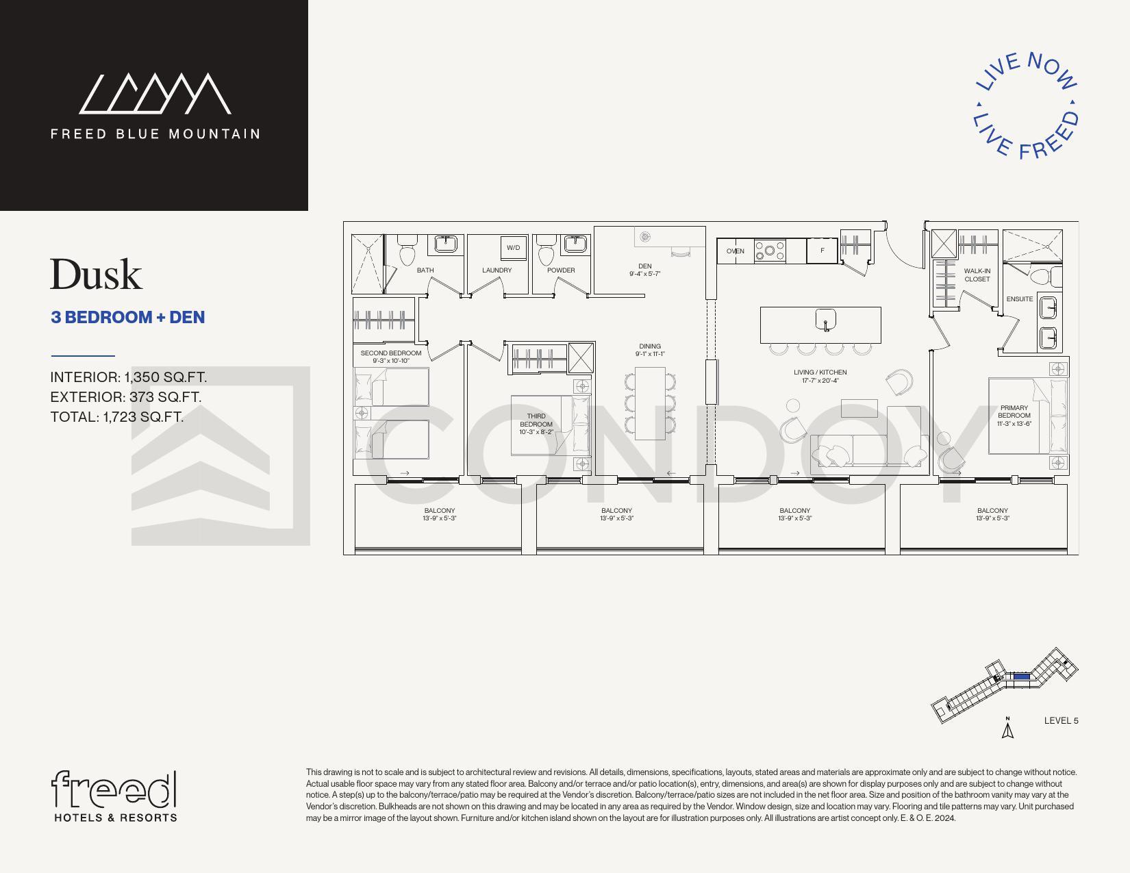 Freed Blue Mountain Condos | Penthouse Dusk 3 beds & 2 baths