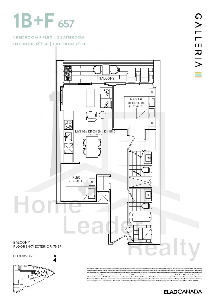 Galleria 3 Condos | 1B+F 657 1 bed & 2 baths