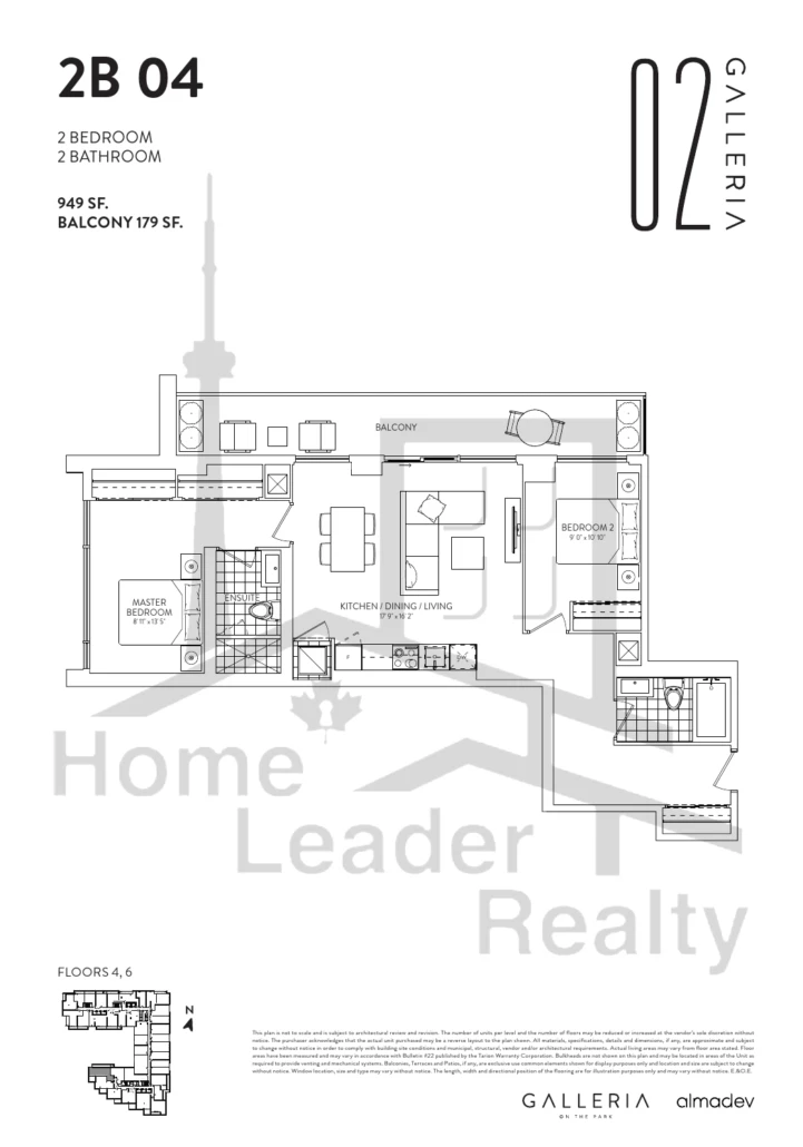 2B 04 - Unit 604B 2 Bed , 2 Bath 949 SQFT North West
