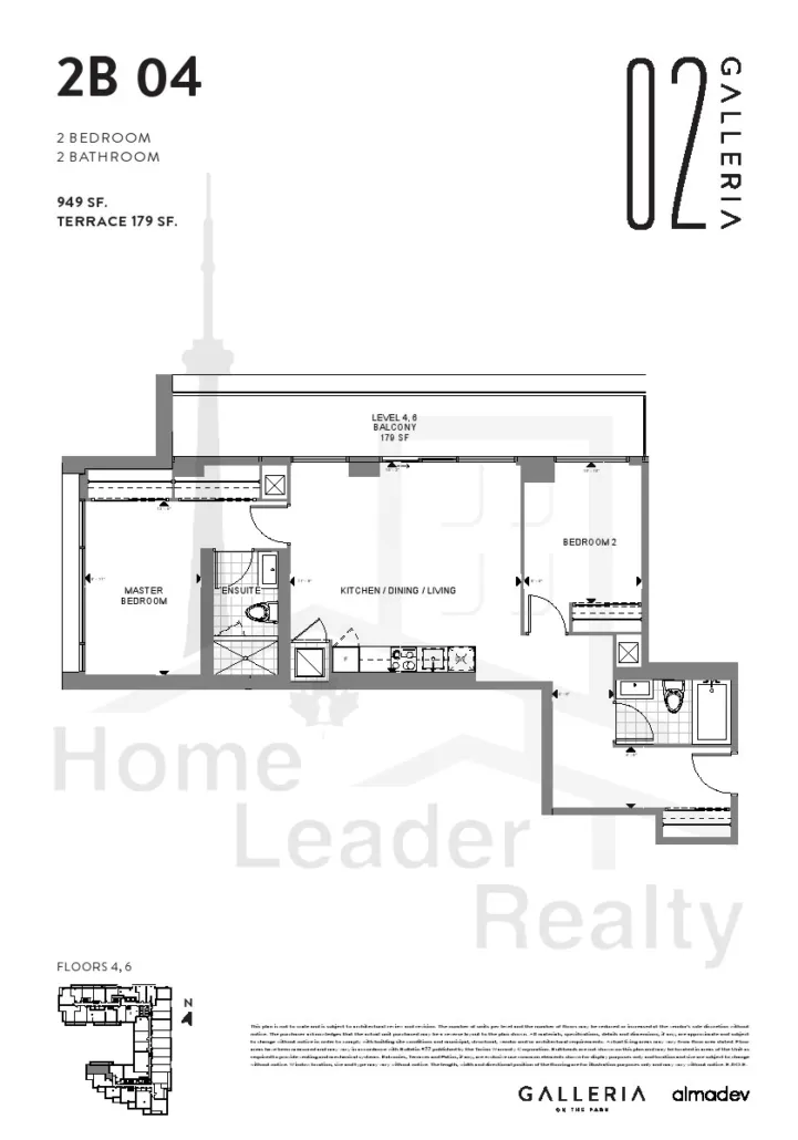 2B - 04 2 Bed , 2 Bath 949 SQFT North West