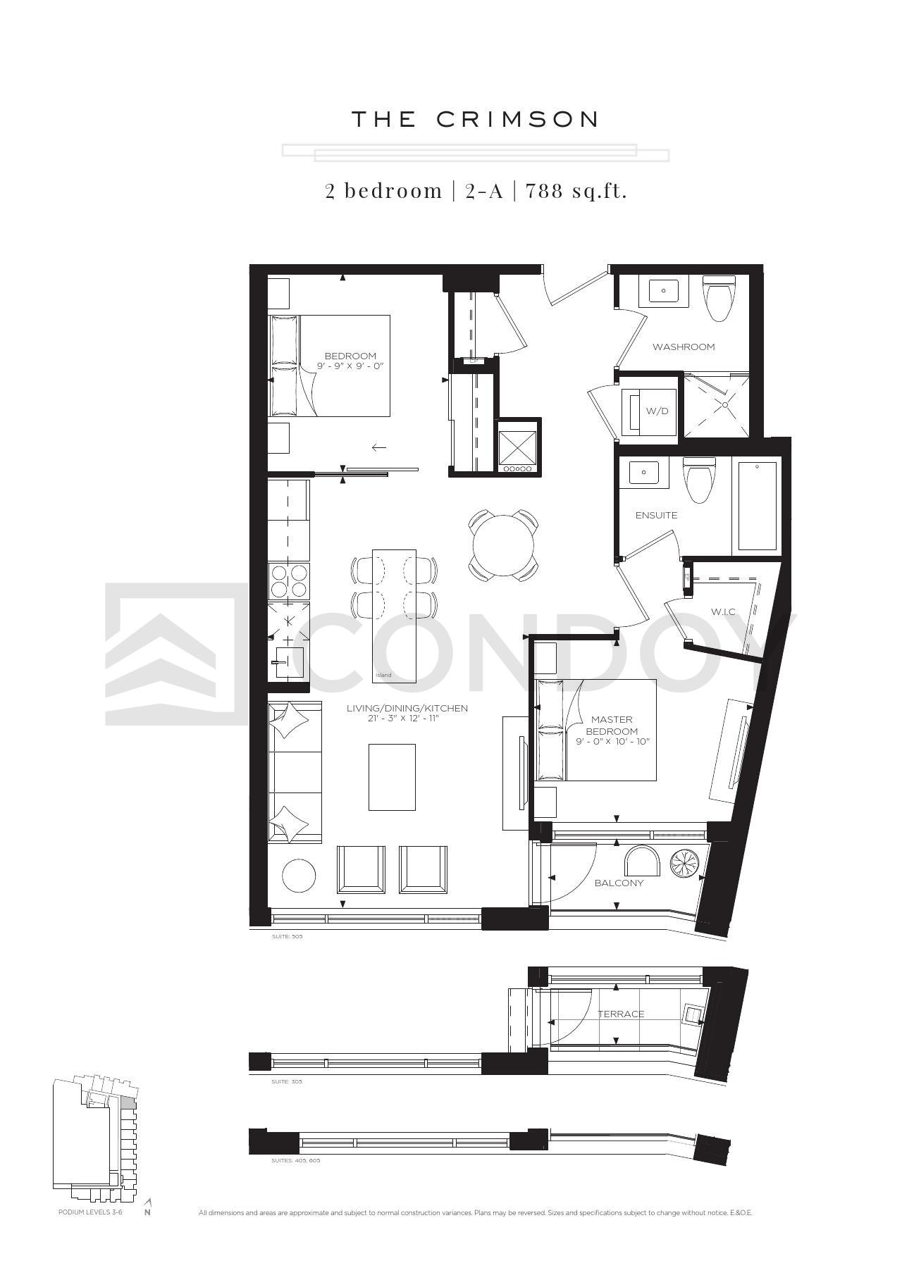 The Crimson 2 Bed , 2 Bath 788 SQFT East