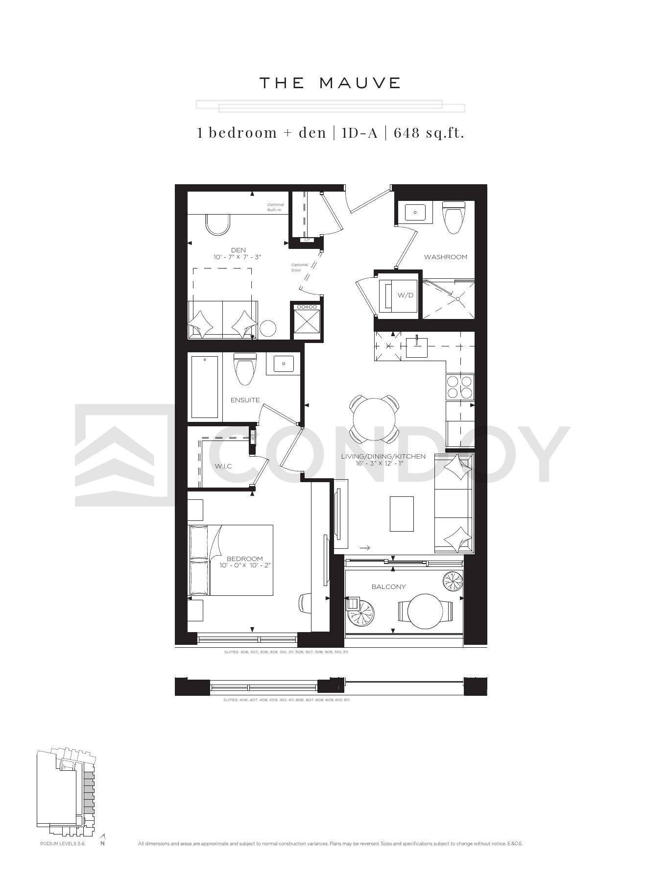 The Mauve 1.5 Bed , 2 Bath 648 SQFT East