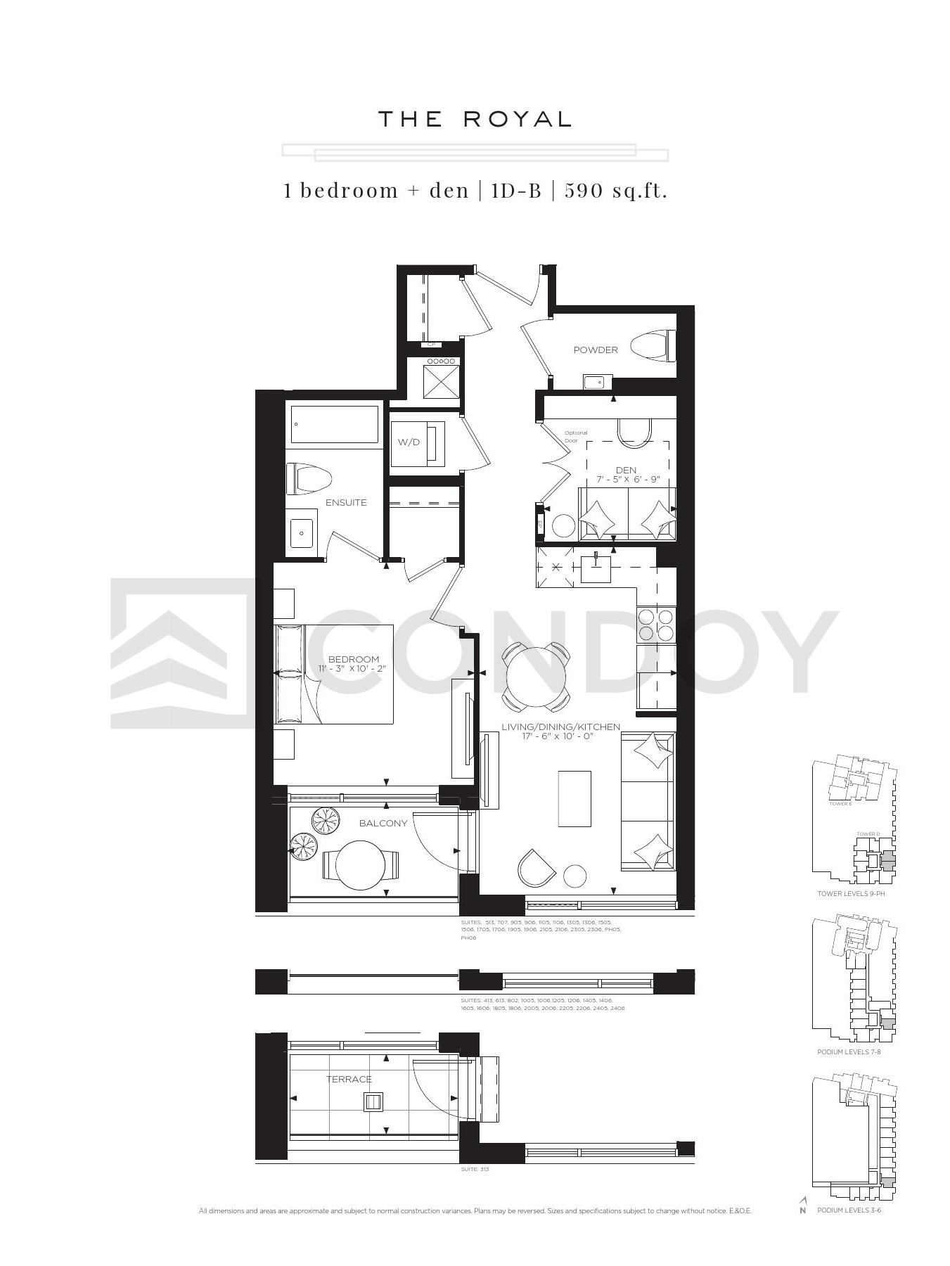 The Royal 1.5 Bed , 1.5 Bath 590 SQFT East