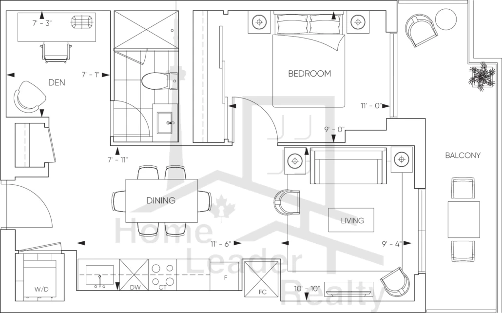 1C+D 1 Bed , 1 Bath 603 SQFT East