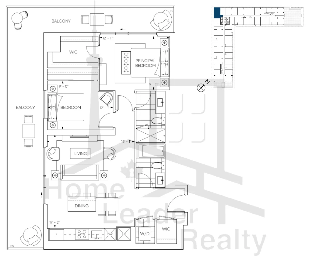 2BBB 2 Bed , 2 Bath 957 SQFT North West