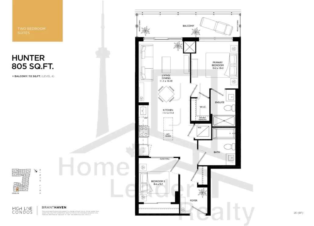 Hunter 2 Bed , 2 Bath 805 SQFT South
