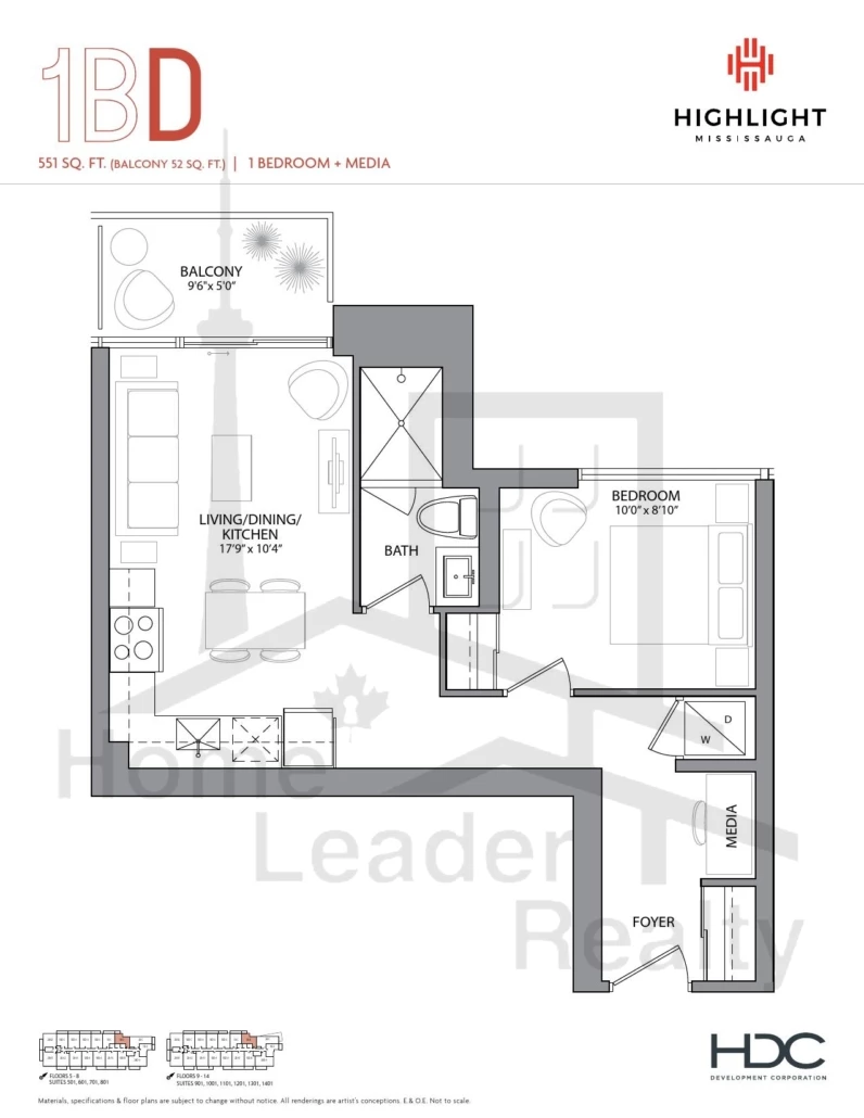 Highlights Condos and Towns | 1101 (1B-D) 1 bed & 1 bath