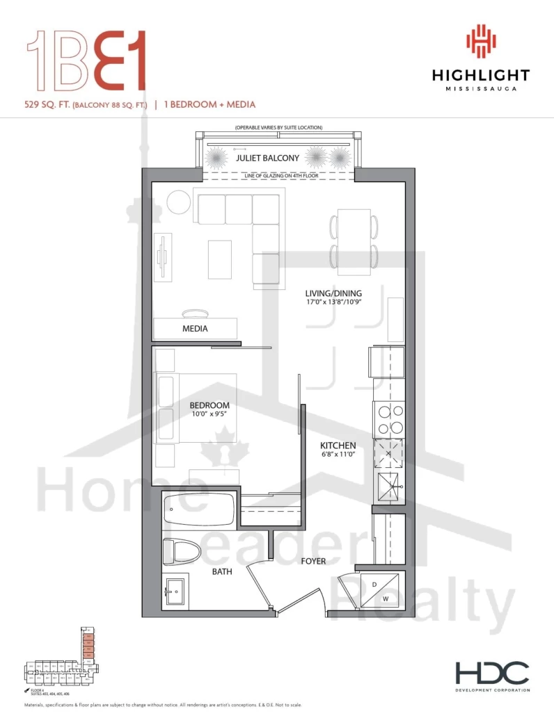 Highlights Condos and Towns | 406 (1B-E2) 1 bed & 1 bath