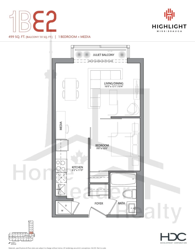 Highlights Condos and Towns | 407 (1B-E2) 1 bed & 1 bath