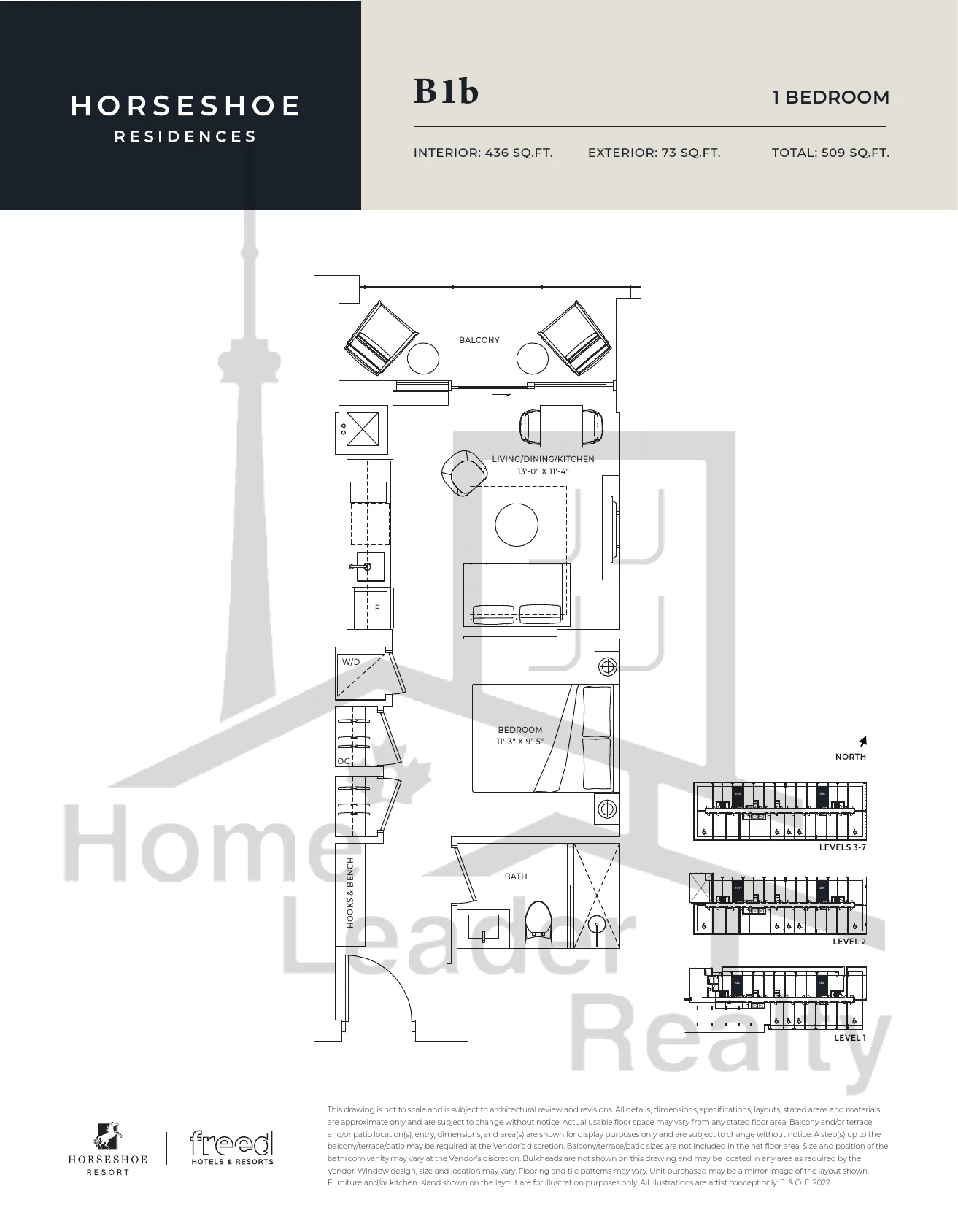 B1b 1 Bed , 1 Bath 436 SQFT North