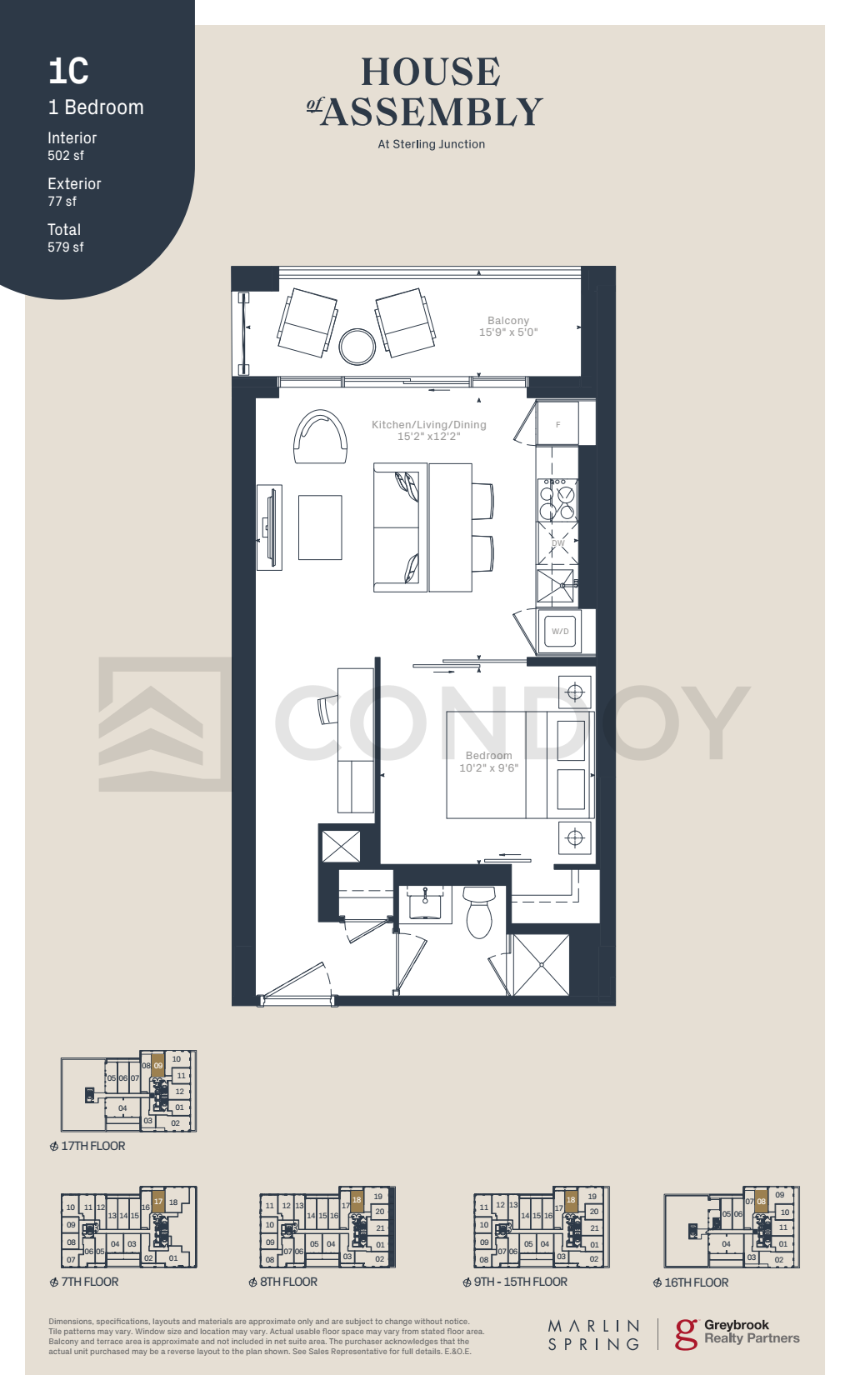 1F-D 1.5 Bed , 2 Bath 608 SQFT South