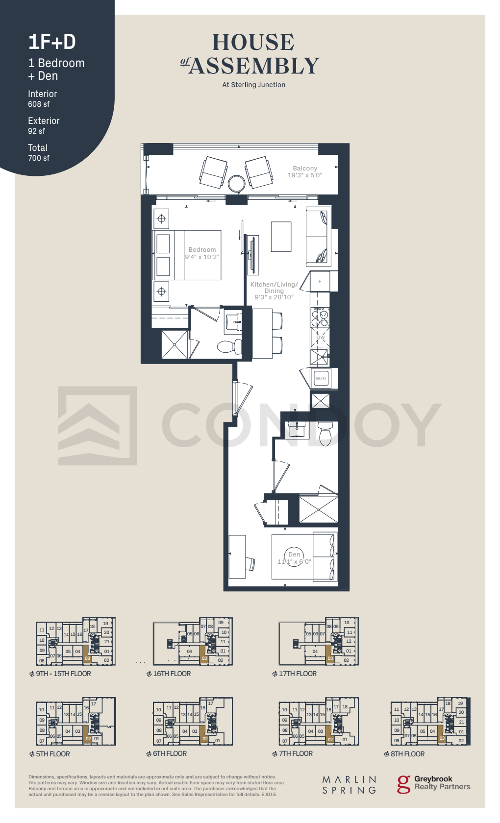 1F-D | 1.5 Bed , 2 Bath | 608 SQFT | South |