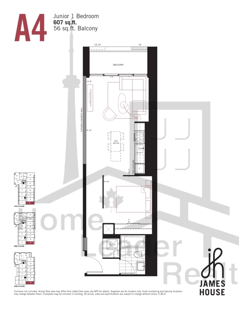 A4 1 Bed , 1 Bath 607 SQFT South East