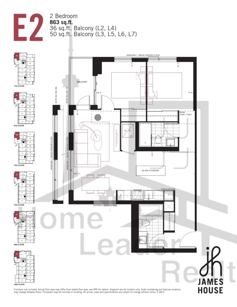E2 2 Bed , 2 Bath 863 SQFT North West