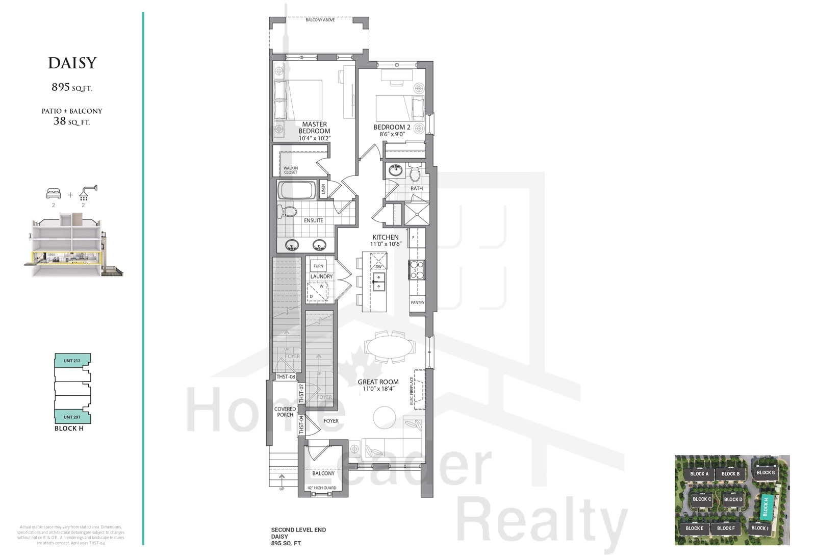 Daisy 2 Bed , 2 Bath 895 SQFT East